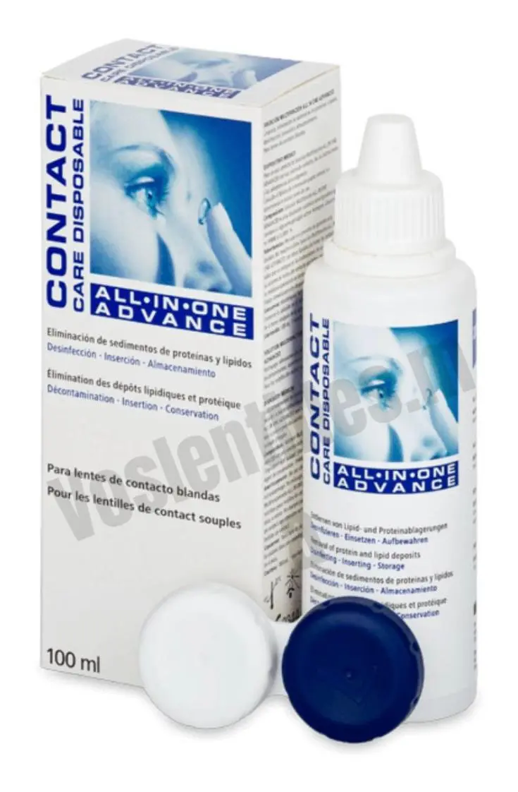 ZEISS Contact Care Disposable All-in-one Advance nettoie, dissout et élimine les graisses, les autres dépôts et les débris cellulaires des lentilles de contact souples. Élimine les micro-organismes nocifs à la surface des lentilles. Pour le rinçage, la conservation et le mouillage des lentilles avant leur mise en place.